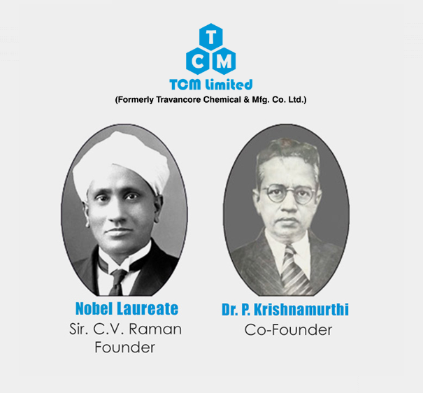 TCM is one of the oldest companies in the region founded by Nobel Laureate Sir C.V.Raman and Dr. P. Krishnamurti in the year 1943 as Travancore Chemical Manufacturing Company Ltd and subsequently the name was changed to TCM Ltd in the year 1996. TCM during its 75 years of history, established manufacturing units in different locations in India right from 1944 onwards. TCM became one of the pioneer in manufacturing sector specially with Organic and inorganic chemicals, Fungicides, Herbicides, Barium and Strontium salts, Strontium Nitrite, Sodium Sulfide and various other derivatives.