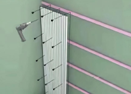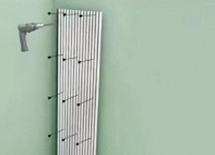 Use black screws to attach the backing board to the wall through the polyester acoustic panel. It is recommended to use at least 9 screws per grille panel.