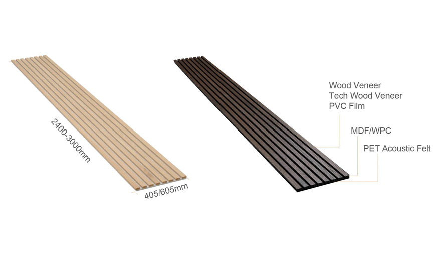 Slat Acoustic Panels provide an excellent look and improve acoustics by absorbing echoes and reverberations, making the room environment more pleasant. In the use stage, the Slat Acoustic Panels itself will not release harm-ful substances and can be widely used on walls and ceilings in living rooms, corridors, kitchens, children's rooms, bedrooms, and offices. They are also suitable for public spaces, shops, restaurants, and more.