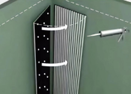 Use black screws to attach the backing board to the wall through the polyester acoustic panel. It is recommended to use at least 9 screws per grille panel.
